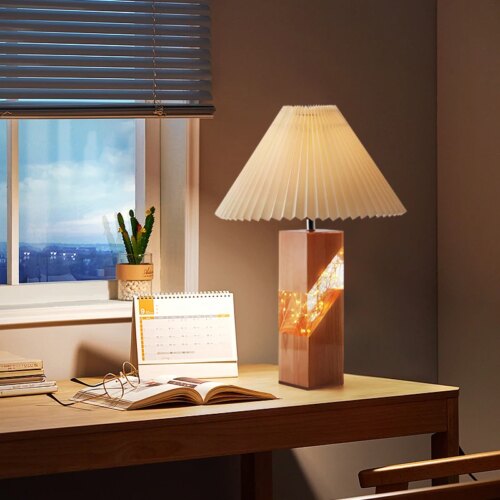 Lampe de Table en bois plissée en noyer, style nordique, Vintage