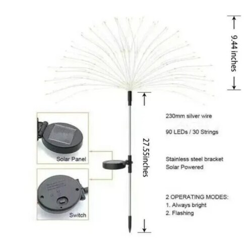 Lampe de jardin solaire en forme de feu d’artifice, imperméable