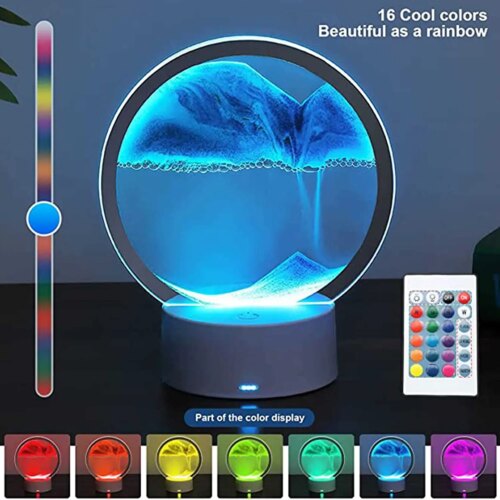 Lampe de paysage de sable 3D à LED RGB, peinture de sable, sablier d’art mobile coloré, affichage en mouvement