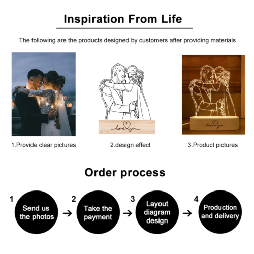 Lampe Photo 3D personnalisée, lampe de nuit, texte, mariage