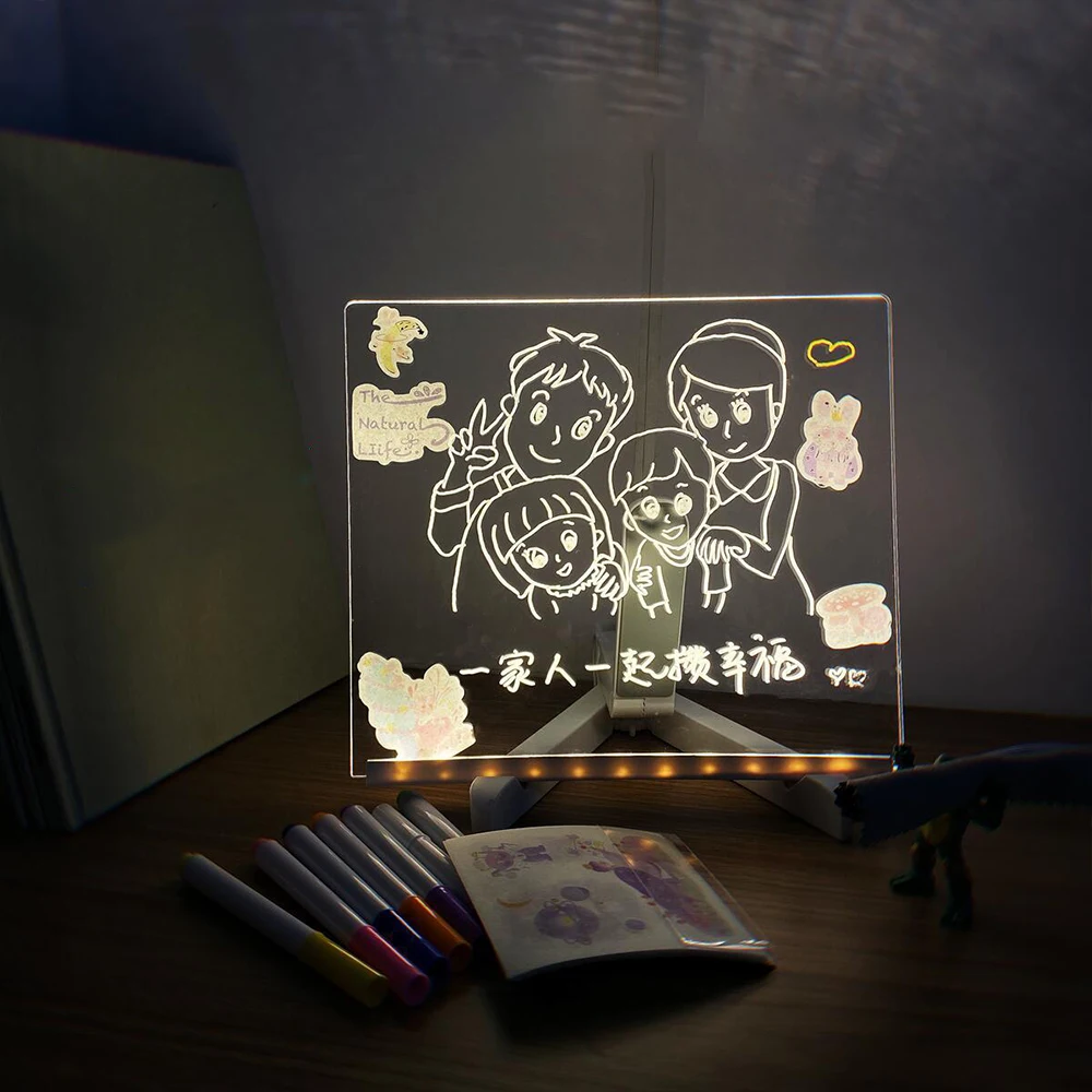Panneau de notes en veilleuse créative led avec stylo
