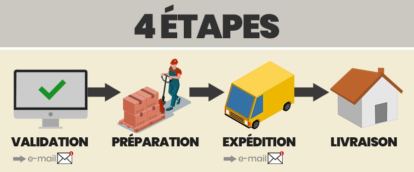 Les délais ne sont pas garantis à 100 % et peuvent être affectés par des événements externes (fêtes, intempéries, retards transporteur).