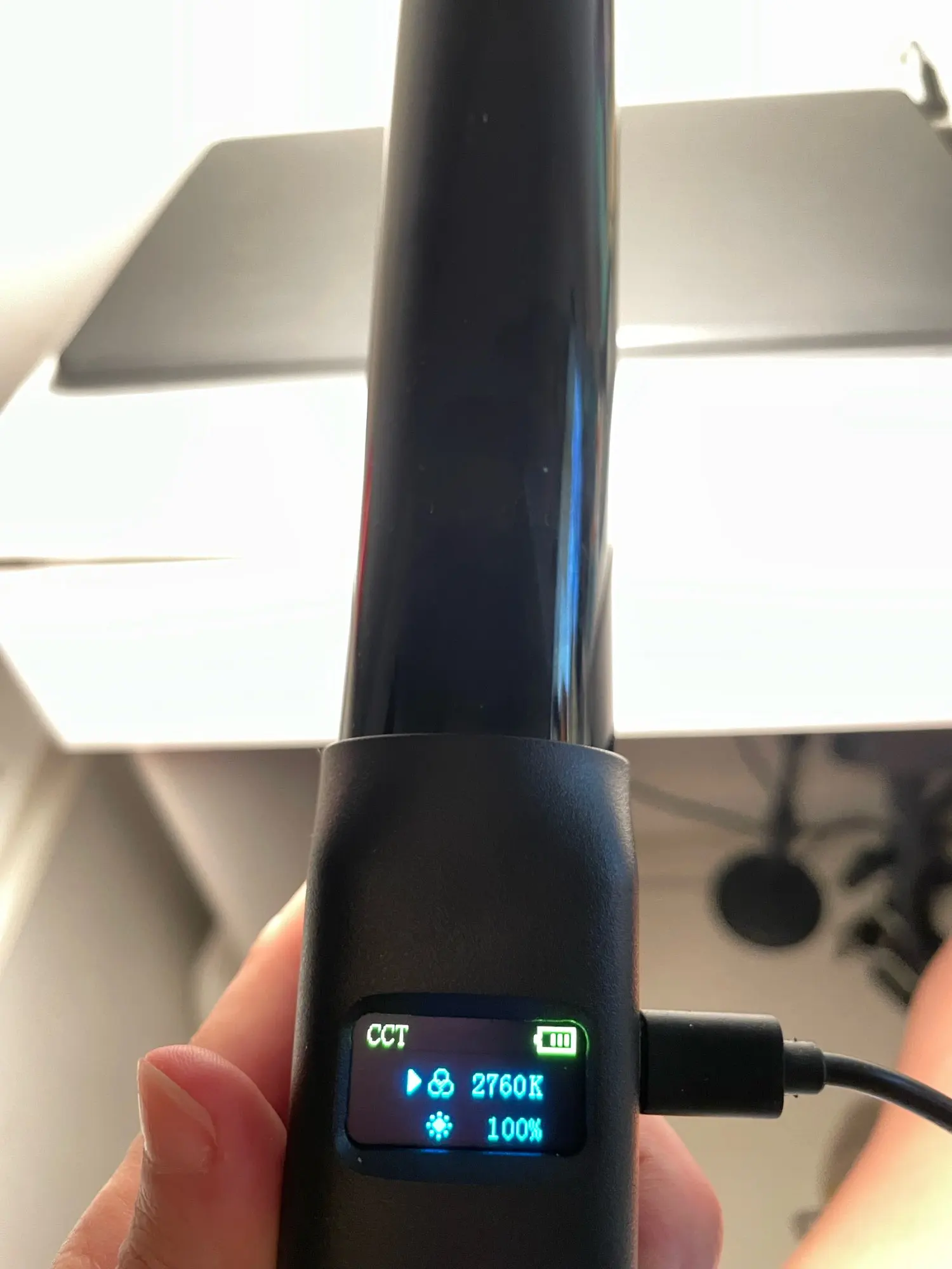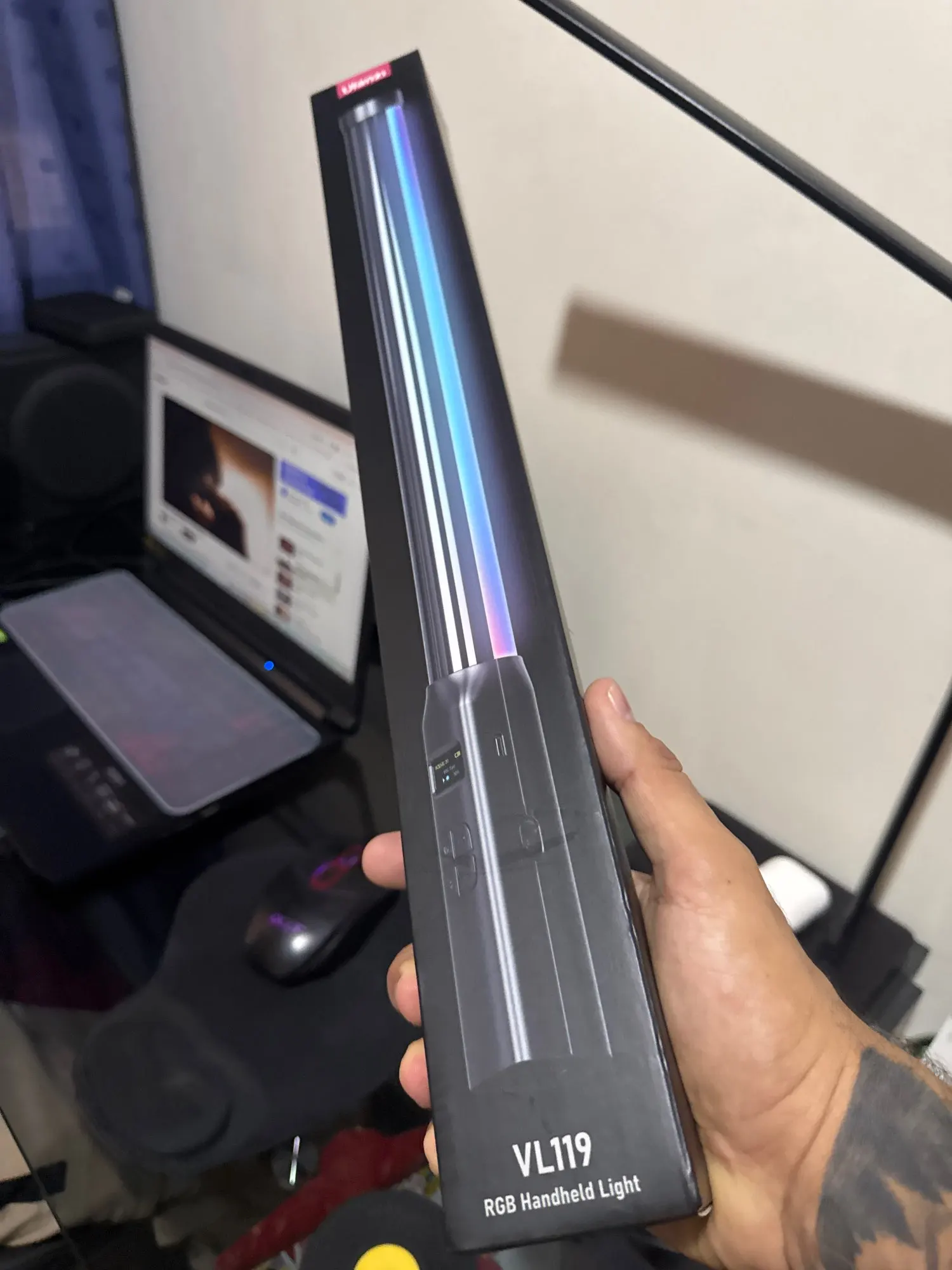 Bonne lampe, crée une belle image pour les vidéos, les spectateurs l’aiment, j’ai acheté une autre lampe rectangulaire à un prix inférieur et elle brille plus que cette bâtonne. Comment brille celui rectangular, vous pouvez voir une couleur rose/violette dans l’arrière-plan et il est à environ 67% à ce moment-là, tandis que cette bâtonne brille à 100%. L’écran derrière eux est le même et ajusté presque de la même manière, les fonctions sont également les mêmes, seuls les boutons d’ajustement sont différents. Donc, si vous avez besoin d’une lumière plus brillante, il vaut mieux chercher une lumière rectangulaire, bien que la bâtonneuse semble cool dans le cadre, contrairement à la lumière rectangulaire, si vous en avez besoin.