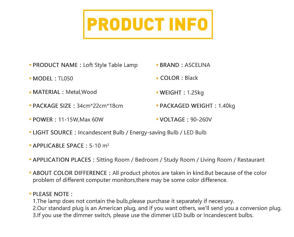 lampe de bureau en bois à Led, style américain, Vintage, luminaire décoratif d’intérieur, idéal pour un Loft ou une lecture