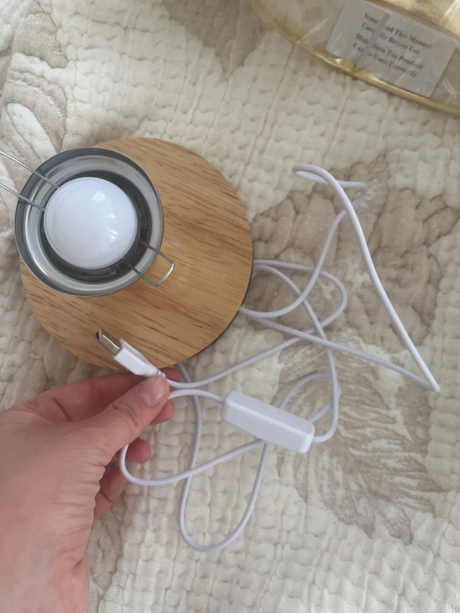 Lampe de table sur un socle en bois. Fonctionne via USB, visuellement bien conçu. La base en bois est recouverte de vernis, tandis que la jambe est mate (sans revêtement de vernis). Pièces métalliques de bonne qualité. Il était emballé dans une boîte, tout est arrivé en parfait état. Malheureusement, ils m’ont envoyé le mauvais design, mais la lampe en elle-même est bonne, donc je n’ai pas abaissé la note.